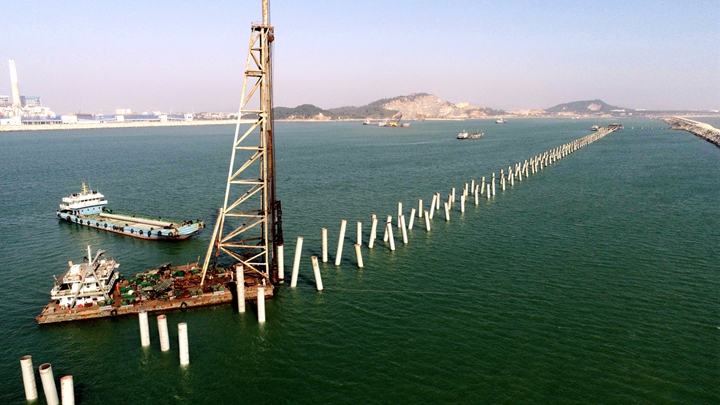 油品碼頭工程新建1個(gè)10萬噸級油品泊位、4384米公用管廊及配套設(shè)施。水域公用管廊鋼管樁總量607根,其中斜樁322根,直樁285根。公共管廊建成后將為東區(qū)13個(gè)液體化工品泊位提供服務(wù),是博賀新港區(qū)重要的前置性基礎(chǔ)工程,也是打造南海能源新通道的奠基工程。本次樁基工程提前完工,對工程整體進(jìn)度推進(jìn)具有重要意義。