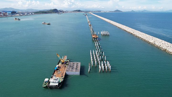 近日,茂名港博賀新港區(qū)東區(qū)油品碼頭工程首件3800噸重的沉箱順利出運(yùn)安裝,項(xiàng)目的碼頭泊位水上施工正式拉開帷幕。