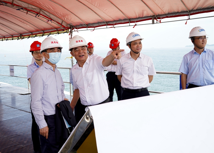 陳林夕一行深入到茂名港博賀新港區(qū),實地考察了茂名港博賀新港區(qū)各省市重點項目的推進情況?疾熘,陳林夕對博賀新港區(qū)宏大的總體規(guī)劃和蓬勃的發(fā)展態(tài)勢表示贊嘆。他表示,港口建設事關茂名市經(jīng)濟建設的百年大計,茂名港集團作為市屬企業(yè)的“排頭兵”,發(fā)展前景十分廣闊,擁有較好的發(fā)展?jié)摿皡^(qū)位資源優(yōu)勢。他希望,以本次調研為契機,充分發(fā)揮國家開發(fā)銀行金融服務優(yōu)勢,以茂名港集團重點項目為抓手,建立緊密的合作關系,提供契合集團發(fā)展方向的創(chuàng)新金融服務,攜手茂名港集團實現(xiàn)互利共贏,共同推動茂名地區(qū)經(jīng)濟發(fā)展。