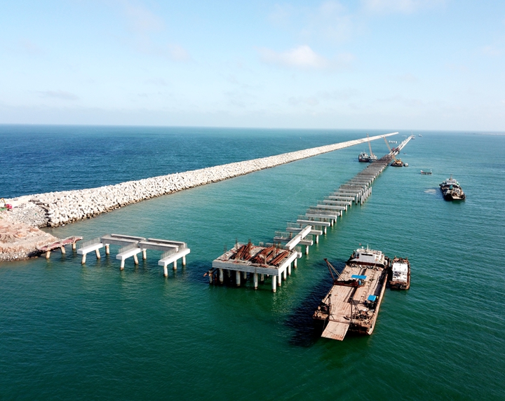 目前,集團已成立4個項目臨時黨支部。各臨時黨支部積極組織勞動競賽、項目大干第三季度等活動,充分發(fā)揮戰(zhàn)斗堡壘作用,以“紅色引擎”推動項目高效建設(shè)。其中:東區(qū)油品碼頭項目各分項工程取得顯著成效,陸域管廊工程基本完工,碼頭沉箱開始安裝,管架及水域橫梁快速推進。東區(qū)化工碼頭項目港池疏浚及基槽挖泥基本完成;基床拋石累計完成設(shè)計總量的51%;沉箱預(yù)制累計完成設(shè)計總量的35%,沉箱安裝累計完成設(shè)計總量的10%;箱內(nèi)回填開始施工。東區(qū)化工倉儲項目土石方累計完成設(shè)計總量的68%,擋土墻累計完成設(shè)計總量的52%,化工罐組基礎(chǔ)、油品罐組基礎(chǔ)、庫區(qū)道路、地管、總變電所及消防控制室等分項工程正在同步實施。茂名港務(wù)中心項目目前地下室已施工完成,正式轉(zhuǎn)戰(zhàn)地面工程,首層主體工程正在施工。