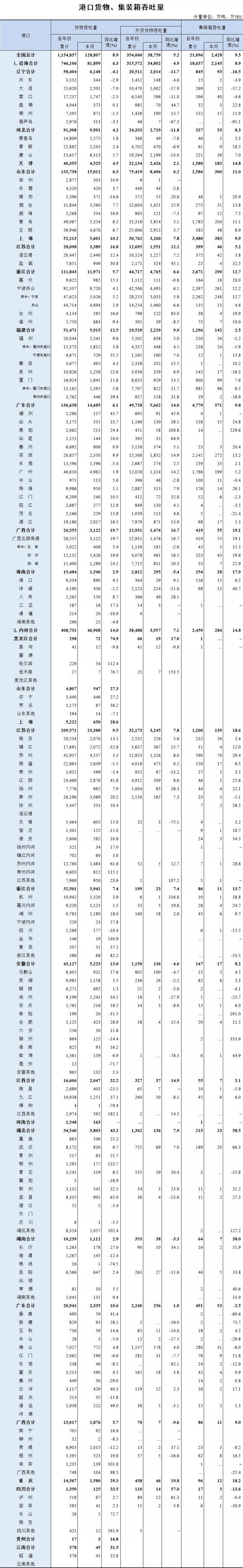 根據(jù)交通運輸部數(shù)據(jù),1-9月,全國港口完成貨物吞吐量115.48億噸,同比增長8.9%;完成集裝箱吞吐量2.11億TEU,同比增長9.5%。其中,沿海港口完成貨物吞吐量74.6億噸,同比增長6.3%;完成集裝箱吞吐量1.86億TEU,同比增長8.9%。 9月份,兩大榜單排名未見變化,只是增速進(jìn)一步放緩,集裝箱吞吐量方面東莞港已與去年持平,福州港吞吐量增速轉(zhuǎn)為負(fù)數(shù),不過從總體來看,集裝箱吞吐量與貨物吞吐量的增速降幅不大,已進(jìn)入平穩(wěn)增長區(qū)間。從海關(guān)數(shù)據(jù)來看,9月份當(dāng)月進(jìn)出口同比增長15.4%,增速較8月份回落了3.5個百分點。 港口圈認(rèn)為,這不意味著港口總體向好的發(fā)展趨勢就此打住,9月份,臺風(fēng)對長三角、東南沿海、珠三角各大港口生產(chǎn)運輸都有影響,限電也波及各制造業(yè)大省,可能導(dǎo)致出口貨物減少。但這些因素的陰霾不會持續(xù)太久,在國家力保煤電供應(yīng)的政策下,第四季度港口生產(chǎn)數(shù)據(jù)仍將保持相對穩(wěn)定的增長。 附交通運輸部完整數(shù)據(jù):