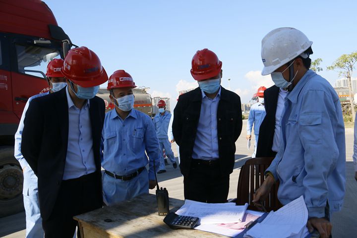 王志華一行先后到中油王港碼頭作業(yè)區(qū)、油品中轉(zhuǎn)位、港口經(jīng)營(yíng)公司煤炭卸料區(qū)、污水處理設(shè)施等處實(shí)地檢查。他詳細(xì)詢問(wèn)生產(chǎn)經(jīng)營(yíng)、疫情防控、消防安全、值班值守等情況,并現(xiàn)場(chǎng)了解中油王港公司定量充裝系統(tǒng)改造進(jìn)展情況及抽查作業(yè)人員的裝車(chē)操作技能掌握情況。