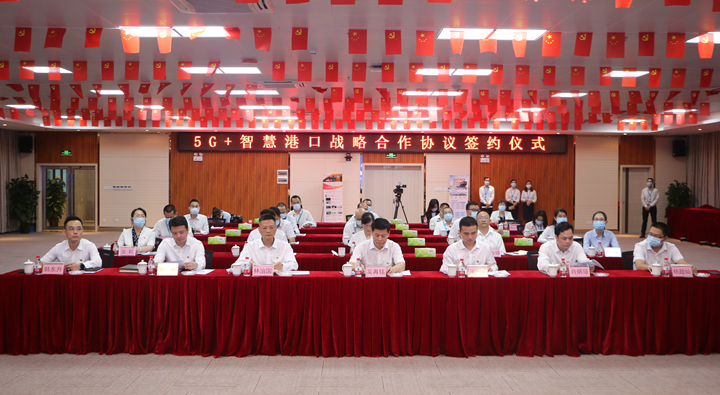 5月11日下午,茂名港集團(tuán)與茂名移動簽署“5G+智慧港口”戰(zhàn)略合作協(xié)議,雙方攜手打造“5G+智慧港口”。茂名市政府副秘書長吳再銘,茂名港集團(tuán)黨委書記、董事長王志華,黨委副書記、總裁肖炳璋,茂名移動黨委書記、總經(jīng)理林治國等一行出席簽約儀式。