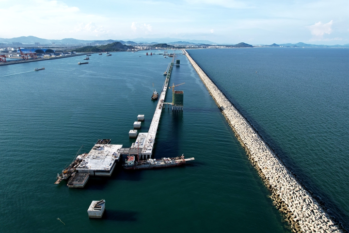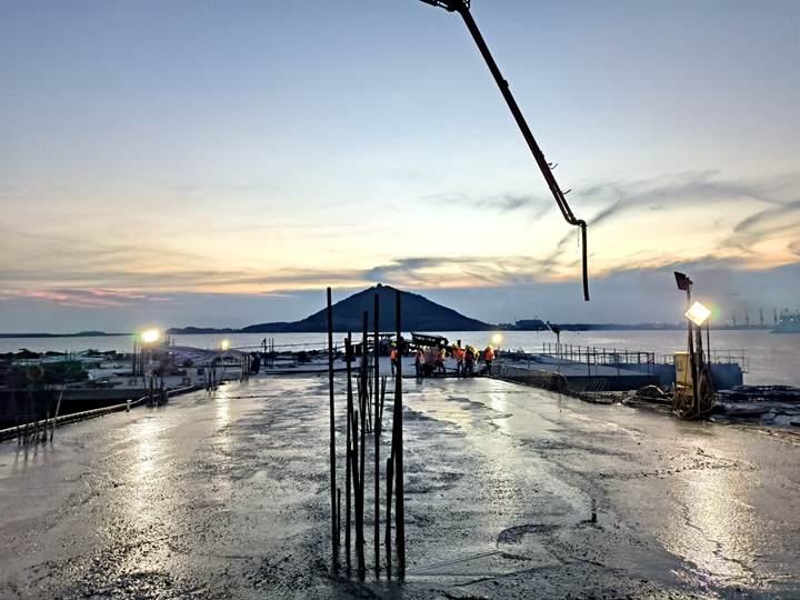 6月29日下午,茂名港博賀新港區(qū)東區(qū)油品碼頭工程水域公用管廊棧橋現(xiàn)澆面層完成澆筑,完成了油品碼頭項(xiàng)目公共管廊橋與碼頭全面貫通,實(shí)現(xiàn)了“海陸對(duì)接”,一舉貫通了博賀新港區(qū)的“大動(dòng)脈”。