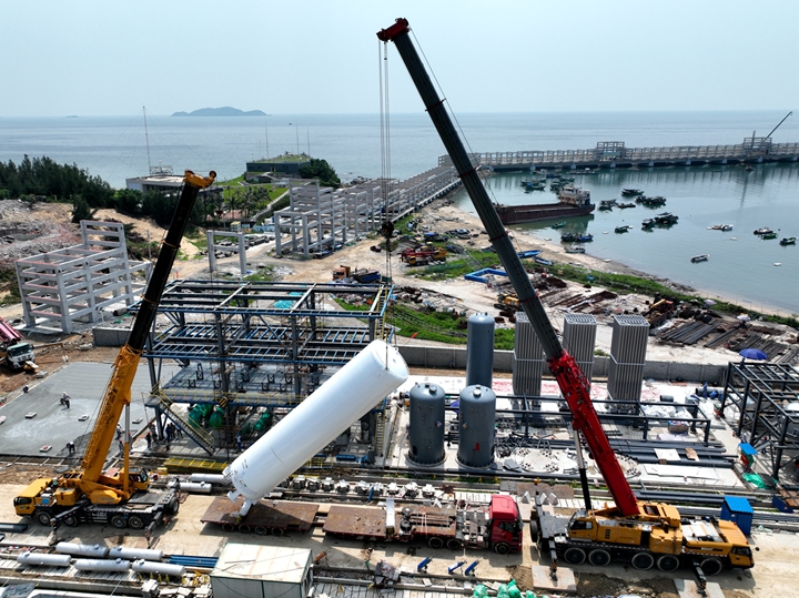 9月2日,茂名港博賀新港區(qū)東區(qū)化工碼頭附屬設(shè)施項(xiàng)目首次迎來(lái)超過(guò)40噸的大件設(shè)備——油氣回收系統(tǒng)1號(hào)和2號(hào)液氮罐。