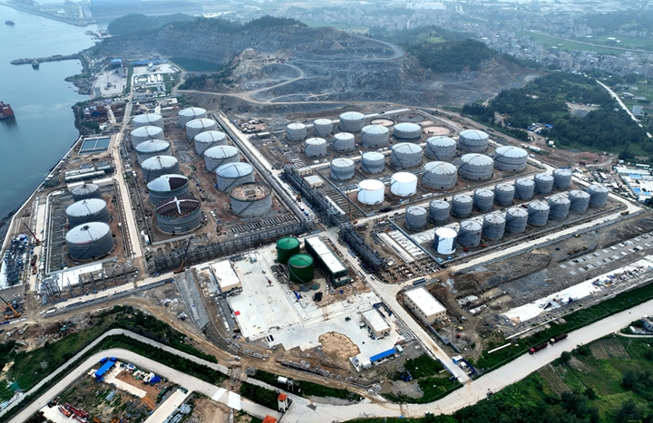茂名港博賀新港區(qū)東區(qū)化工碼頭附屬設(shè)施項(xiàng)目是配套油品碼頭、化工碼頭項(xiàng)目的油品及液體化工品進(jìn)出口中轉(zhuǎn)庫(kù)區(qū),該項(xiàng)目規(guī)劃新建48臺(tái)內(nèi)浮頂儲(chǔ)罐和3臺(tái)拱頂罐,總庫(kù)容81萬(wàn)立方米,庫(kù)區(qū)占地面積586畝,總投資約21億元。該項(xiàng)目建成投用后,可進(jìn)一步提高博賀新港區(qū)倉(cāng)儲(chǔ)能力,打通茂名石化及當(dāng)?shù)厥髽I(yè)原料上岸、產(chǎn)品下海通道,對(duì)茂名打造世界級(jí)石化基地具有非常重要的意義。(羅宇) |