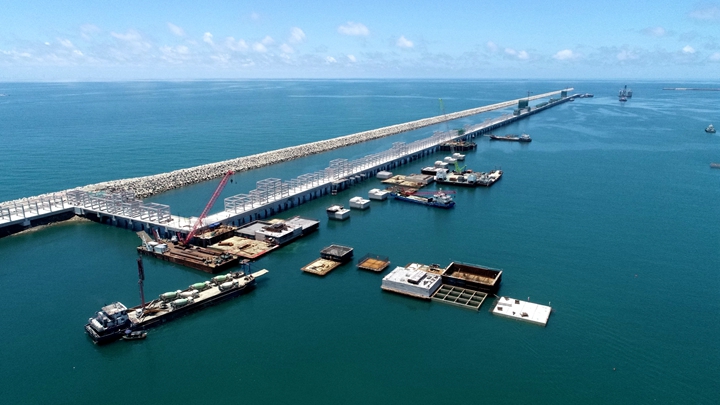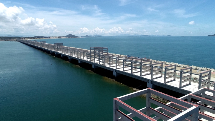 ▲茂名港務(wù)中心項(xiàng)目 在這乘風(fēng)破浪、跨越發(fā)展的十年里,茂名港深水大港崢嶸初現(xiàn),碩果累累——實(shí)現(xiàn)資產(chǎn)規(guī)模和融資規(guī)!半p百”目標(biāo),為濱海新區(qū)基礎(chǔ)設(shè)施建設(shè)和茂名港集團(tuán)發(fā)展提供資金保障,融資平臺作用凸顯;自建、參建省市重點(diǎn)項(xiàng)目超30個(gè),推動博賀新港區(qū)東西防波堤、10萬噸級成品油碼頭、東區(qū)化工碼頭、東區(qū)化工倉儲、粵西LNG造陸項(xiàng)目、茂名港務(wù)中心、博賀灣大橋、供水工程等一批省市重點(diǎn)項(xiàng)目建設(shè)投用,充分發(fā)揮濱海新區(qū)項(xiàng)目建設(shè)主體作用,加快推進(jìn)口岸開放工作,為茂名經(jīng)濟(jì)實(shí)現(xiàn)高質(zhì)量發(fā)展增添動力。 前瞻布局,打造南海能源新通道,積極融入茂名“向海而興”發(fā)展大局。