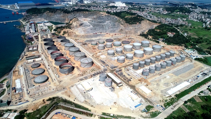 ▲東區(qū)化工倉儲油品罐組一、組三圖 自成立以來,茂名港集團(tuán)緊緊圍繞市委、市政府和濱海新區(qū)黨工委、管委會工作部署,深入推進(jìn)“建深水大港,興濱海綠城”發(fā)展戰(zhàn)略,立足茂名區(qū)位優(yōu)勢和產(chǎn)業(yè)特色,準(zhǔn)確把握現(xiàn)代港口產(chǎn)業(yè)發(fā)展大勢,確立“堅(jiān)定走差異化發(fā)展道路”發(fā)展戰(zhàn)略,圍繞港口產(chǎn)業(yè)鏈供應(yīng)鏈,布局發(fā)展港口物流、港口服務(wù)、現(xiàn)代金融等業(yè)務(wù)板塊,探索現(xiàn)代化智慧港口建設(shè),以時(shí)不待我的精神,奮力推進(jìn)濱海新區(qū)博賀新港區(qū)基礎(chǔ)設(shè)施建設(shè),為茂名向海而興提供了強(qiáng)大助力。 主動作為,以項(xiàng)目建設(shè)為中心,充分發(fā)揮濱海新區(qū)建設(shè)平臺作用。