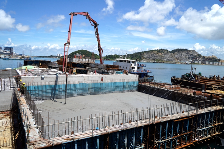 ▲東區(qū)化工碼頭項(xiàng)目胸墻澆筑作業(yè) 集團(tuán)當(dāng)前在建的10萬噸級成品油碼頭、東區(qū)化工碼頭等碼頭泊位建設(shè)進(jìn)入沖刺階段,認(rèn)真貫徹市委市政府關(guān)于加快口岸開放工作的要求,計(jì)劃今年竣工驗(yàn)收;茂名港務(wù)中心已完成主體結(jié)構(gòu)施工,計(jì)劃今年建成投用,將為濱海新區(qū)樹立嶄新地標(biāo);30萬噸級原油碼頭報(bào)批報(bào)建工作取得重大突破,項(xiàng)目岸線申請獲得國家交通運(yùn)輸部批復(fù),前期工作不斷加快推進(jìn),即將進(jìn)入實(shí)質(zhì)性實(shí)施階段,現(xiàn)代化深水大港的畫卷徐徐展開。 挖潛增效,劃轉(zhuǎn)老國企扭虧為盈,實(shí)現(xiàn)國有資產(chǎn)保值增值。