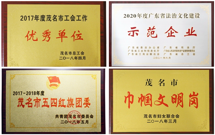 ▲集團(tuán)榮譽(yù)獎(jiǎng)牌(摘選) 幾年來,集團(tuán)工會榮獲“茂名市工會工作優(yōu)秀單位”稱號,集團(tuán)財(cái)務(wù)部女職工榮獲“茂名市巾幗文明崗”稱號;集團(tuán)團(tuán)委成立青年志愿者服務(wù)隊(duì),助力雙創(chuàng)工作,連續(xù)三年榮獲“茂名市五四紅旗團(tuán)委”稱號。集團(tuán)憑借系列企業(yè)文化建設(shè)成果,先后榮獲 “中國企業(yè)文化建設(shè)典范企業(yè)”“廣東省先進(jìn)集體”“廣東省優(yōu)秀企業(yè)”“廣東省企業(yè)文化建設(shè)最佳實(shí)踐單位”“廣東省法治文化建設(shè)示范企業(yè)”等榮譽(yù),被譽(yù)為茂名市屬國有企業(yè)的標(biāo)桿與典范。 結(jié)語 十年積跬步,足下至千里。回眸十年的非凡征程,茂名港人矢志艱苦奮斗,勇于擔(dān)當(dāng)作為,爭當(dāng)茂名向海而興排頭兵,在茂名經(jīng)濟(jì)發(fā)展史上留下堅(jiān)實(shí)的足印。