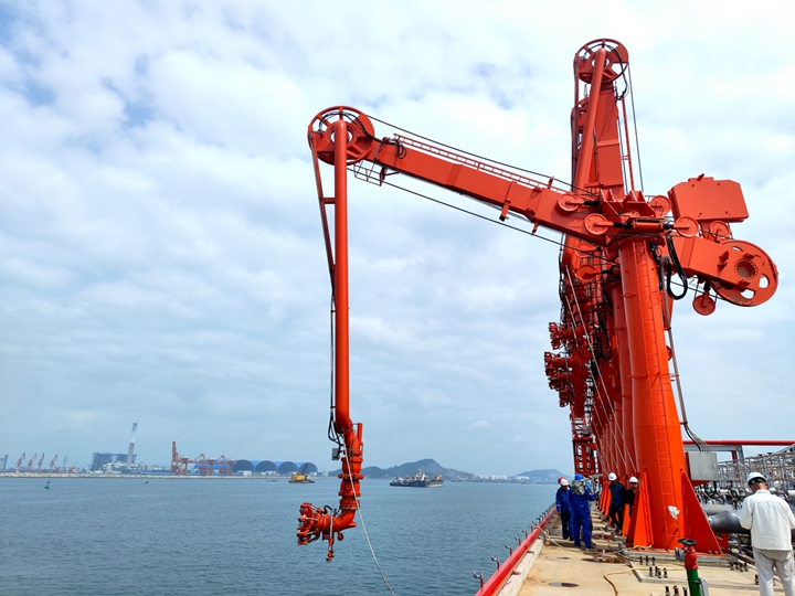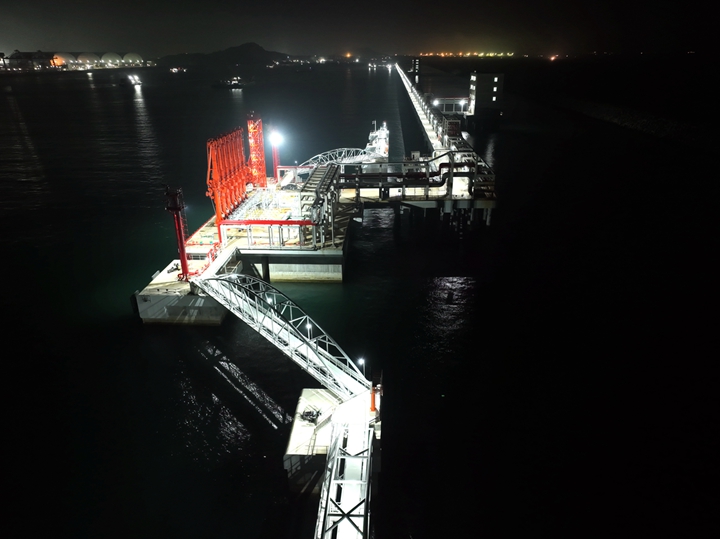 ——喜報!博賀新港區(qū)10萬噸級成品油碼頭項目輸油臂、登船梯設備調(diào)試成功,并實現(xiàn)全線照明亮化!