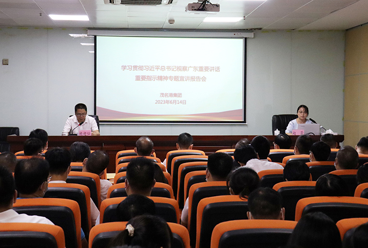 為深入學(xué)習(xí)貫徹習(xí)近平總書記視察廣東重要講話重要指示精神,引導(dǎo)廣大黨員干部職工學(xué)思踐悟、學(xué)以致用,凝聚思想共識(shí)。6月14日,茂名港集團(tuán)組織開展學(xué)習(xí)貫徹習(xí)近平總書記視察廣東重要講話重要指示精神專題宣講報(bào)告會(huì),會(huì)議邀請(qǐng)茂名市委宣講團(tuán)成員、廣東石油化工學(xué)院馬克思主義學(xué)院講師趙芳作專題宣講。集團(tuán)黨委書記、董事長(zhǎng)王志華,集團(tuán)黨委委員、副總裁楊超燦,集團(tuán)黨委委員、紀(jì)委書記、監(jiān)察專員陳軍,集團(tuán)副總裁李昱祺出席宣講會(huì),集團(tuán)各黨支部黨員代表和機(jī)關(guān)全體職工約70人參加宣講會(huì)。