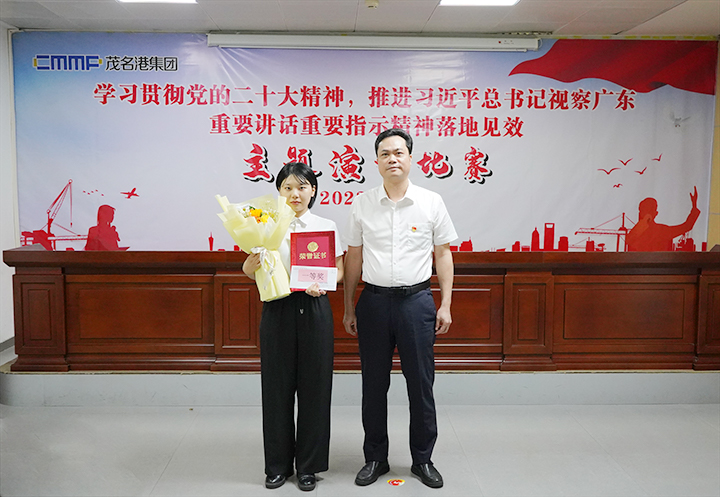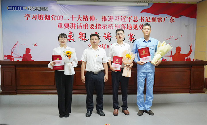 6月27日,茂名港集團舉行“學(xué)習(xí)貫徹黨的二十大精神,推進習(xí)近平總書記視察廣東重要講話重要指示精神落地見效”主題演講比賽決賽。集團黨委副書記、總裁肖炳璋,副總裁李昱祺出席活動,并為獲獎選手頒發(fā)了榮譽證書。