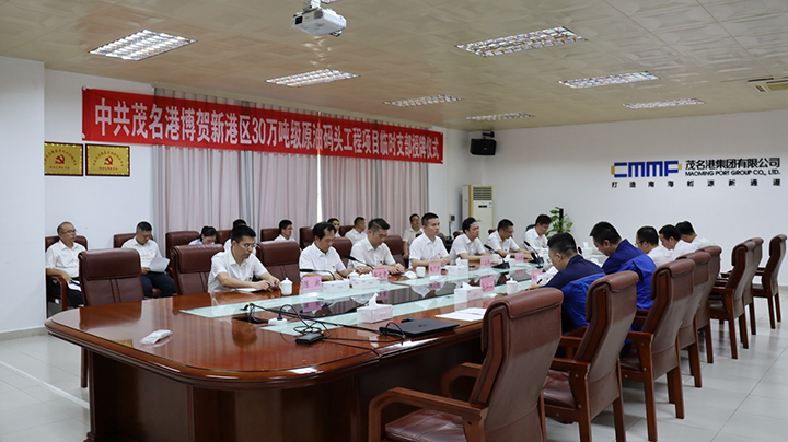 7月1日上午,30萬噸級原油碼頭“臨時(shí)黨支部”授牌儀式在博賀港區(qū)辦公樓二樓大會(huì)議室舉行,集團(tuán)黨委書記、董事長王志華,集團(tuán)黨委副書記、總裁肖炳璋,集團(tuán)黨委副書記、常務(wù)副總裁朱廣宇,集團(tuán)黨委委員、副總裁、工會(huì)主席楊超燦,集團(tuán)黨委委員、總工程師蔡光章,集團(tuán)副總裁李昱祺,黨群工作部、項(xiàng)目部黨員代表和施工單位及監(jiān)理單位代表共30多人參加了授牌儀式。