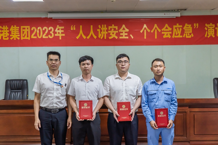 ▲長興石化公司蔡升高、李俊毅、何雄勝,濱海控股公司江振好、港口經(jīng)營公司張斯瑜榮獲三等獎 比賽期間還進行安全生產(chǎn)知識有獎?chuàng)尨瓠h(huán)節(jié),觀眾積極踴躍舉手參與,現(xiàn)場氣氛激烈。 蔡光章對本次“人人講安全、個個會應急”演講比賽給予充分肯定。他表示此次演講比賽選手立足本職崗位、結合工作實際,多角度多維度闡述對安全生產(chǎn)工作所感、所悟、所思,詮釋了安全生產(chǎn)的重要意義,營造了“人人講安全、個個會應急”濃厚氛圍。他強調,集團上下要樹牢安全理念,重視應急管理,掌握應急救援的基本流程、方法和要求,學會自救互救等本領,切實提高突發(fā)事件預防和應急處置能力,為集團高質量發(fā)展筑牢安全屏障。 本次比賽吸引了集團機關各部室及下屬企業(yè)代表共50多人到現(xiàn)場觀賽聆聽。