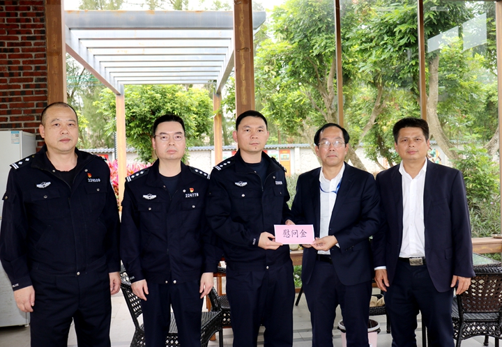 在濱海新區(qū)公安分局,蔡光章向濱海新區(qū)公安分局全體民輔警致以節(jié)日的祝福和誠摯的問候,對奮戰(zhàn)在維護社會穩(wěn)定一線的公安民警一直以來積極履職盡責,在打擊違法犯罪、維護轄區(qū)治安穩(wěn)定、保障人民安居樂業(yè),對企業(yè)發(fā)展創(chuàng)造良好穩(wěn)定的社會環(huán)境等方面作出的貢獻表示由衷的感謝和崇高的敬意。希望濱海新區(qū)公安分局一如既往地關(guān)心和支持企業(yè)的發(fā)展,營造穩(wěn)定和諧的社會治安環(huán)境,共同譜寫茂名產(chǎn)業(yè)強市向海而興濱海綠城新篇章。
