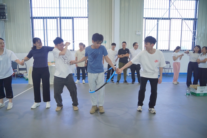 隨后,青年員工們前往體育館開展互動游戲。大家在主持人的引導(dǎo)下開展了妙趣橫生的“破冰環(huán)節(jié)”,大家互相分組認(rèn)識后,氣氛漸濃,闖關(guān)作戰(zhàn)正式拉開帷幕。在闖關(guān)任務(wù)中,各組隊(duì)員凝心聚力、團(tuán)結(jié)協(xié)作,依次完成了“迎風(fēng)奔跑”“突破困境”“一圈到底”以及“趣味猜字謎”等項(xiàng)目。青年們開動腦筋,踴躍互動,現(xiàn)場歡聲笑語,大家在闖關(guān)游戲中相互協(xié)作,增進(jìn)了彼此之間的了解和認(rèn)識,建立了默契和友誼。