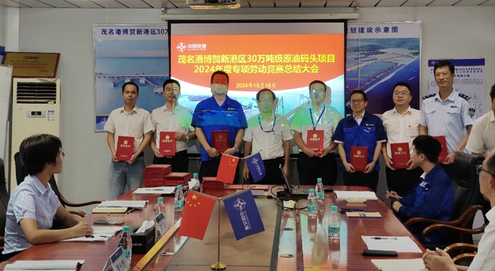 10月18日,茂名港博賀新港區(qū)30萬噸級原油碼頭工程項目臨時黨支部在項目部會議室召開2024年“奮戰(zhàn)120天”專項勞動競賽總結(jié)表彰大會,對自開展勞動競賽和成立黨員先鋒突擊隊以來為項目建設(shè)默默奉獻、表現(xiàn)優(yōu)異的優(yōu)秀黨員干部和先進個人進行表彰。集團黨委委員、總工程師蔡光章出席會議并講話,集團黨群工作部相關(guān)人員陪同出席會議。