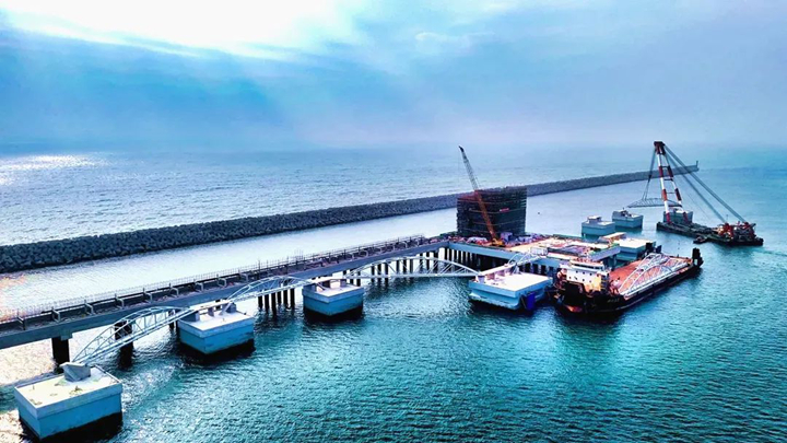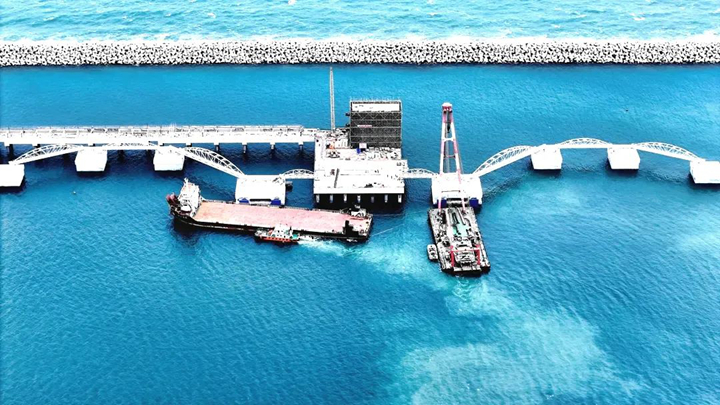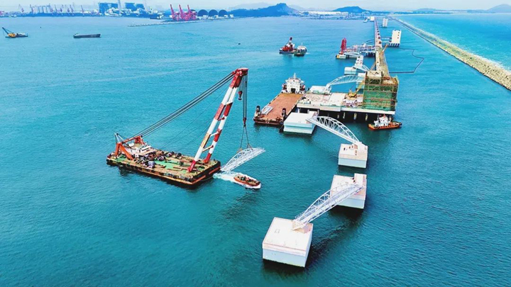在新年伊始的奮進(jìn)號(hào)角中,茂名港30萬(wàn)噸級(jí)原油碼頭工程于2月23日全面完成了鋼聯(lián)橋安裝施工,標(biāo)志著項(xiàng)目建設(shè)完成關(guān)鍵新節(jié)點(diǎn)。這一重要突破為30萬(wàn)噸級(jí)原油碼頭工程新年開好局、起好步奠定了堅(jiān)實(shí)基礎(chǔ),也為加快項(xiàng)目建設(shè),保障工程如期竣工注入了強(qiáng)勁動(dòng)力。